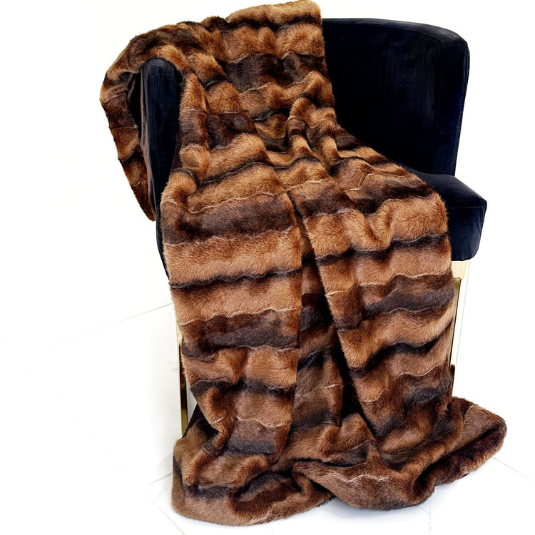 • Plutus Brown Striped Chestnut Luxe Faux Fur Throw Blanket image - 1