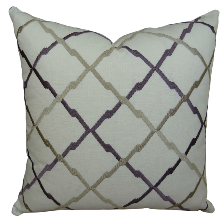 • Handmade Throw Pillow in White Purple Colors Down Alternative Fill image - 1