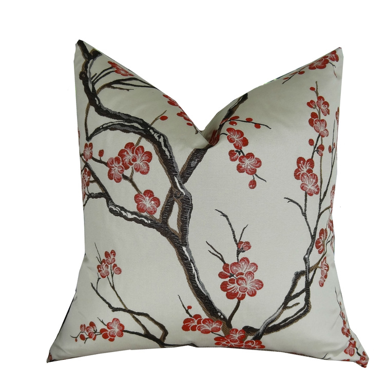 • Japanese Blossom Decorative Throw Pillow - White Red Brown Pattern image - 1