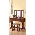 • Poundex Furniture Wood Vanity Set with Stool and Mirror in Cherry image - 1