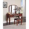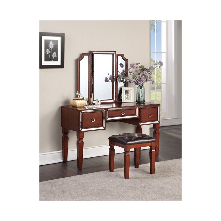 • Poundex Wooden Makeup Vanity Set with Tri-Fold Mirror & Stool image - 1