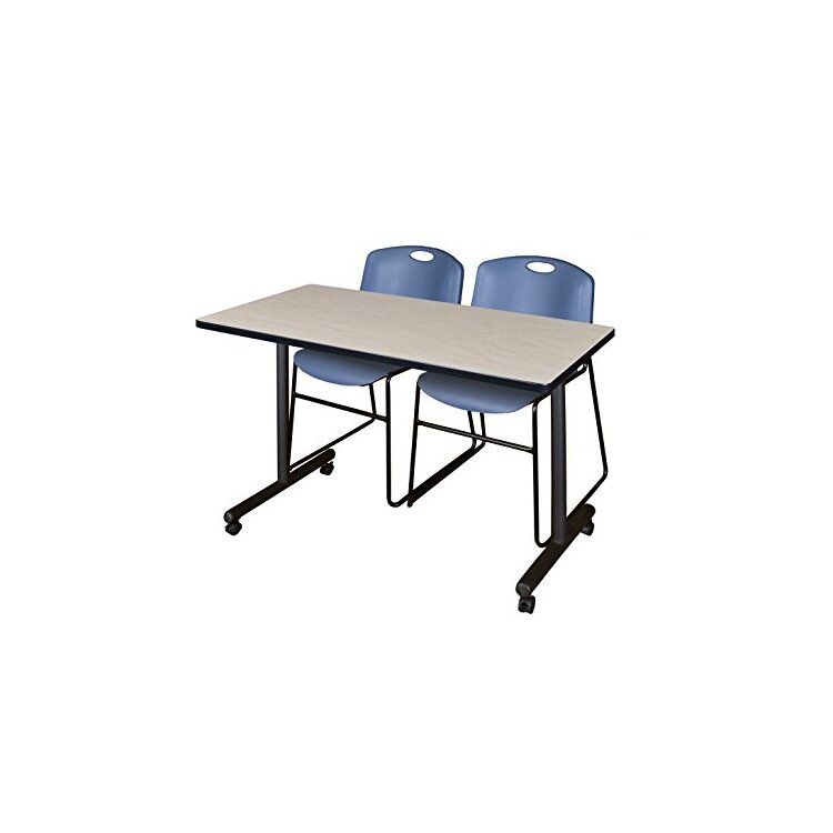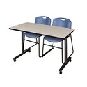 • 48 x 24 Maple Training Table w/2 Stack Chairs - Blue - Regency Seating image - 1