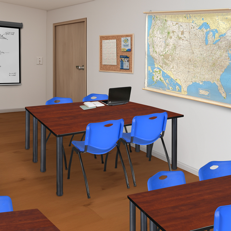 • 60" x 24" Kee Training Table- Cherry/ Black & 2 'M' Stack Chairs- Blue image - 1