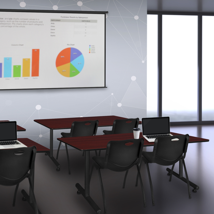 Mahogany Training Table 60 x 24 with Black Stack Chairs - Regency Seating