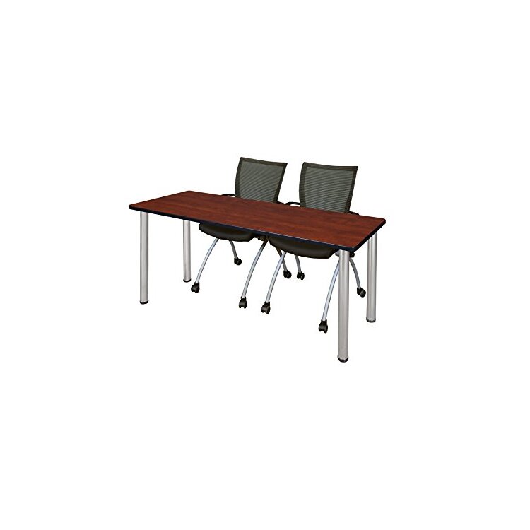 • 66" x 24" Kee Training Table- Cherry/ Chrome & 2 Apprentice Chairs- Black image - 1