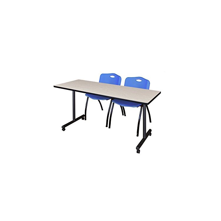 • 66" x 24" Kobe Mobile Training Table- Maple & 2 'M' Stack Chairs- Blue image - 1
