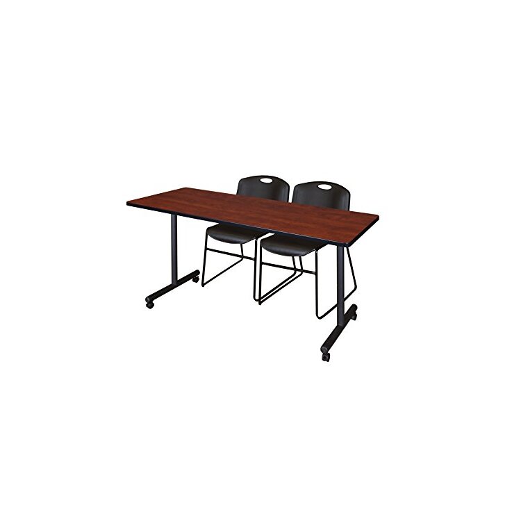 • Mobile Training Table & Black Stack Chairs Set Cherry Wood Furniture - Regency Seating image - 1