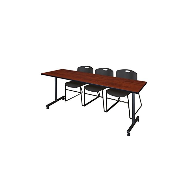 • Cherry Mobile Training Table & Black Stack Chairs Set - 84 x 24 - Regency Seating image - 1
