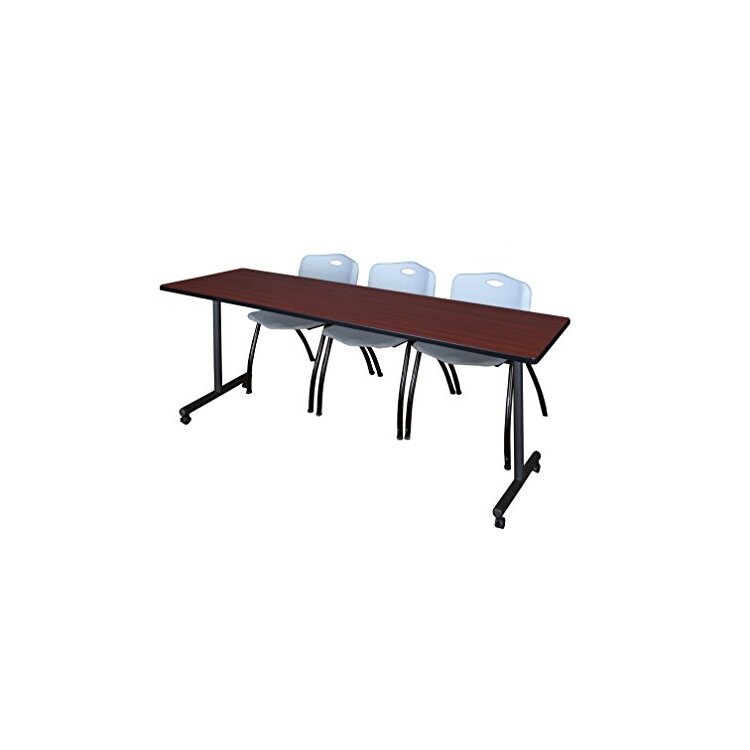 • Mahogany Training Table & Grey Stack Chairs Set - 84 x 24 Large Desk - Regency Seating image - 1