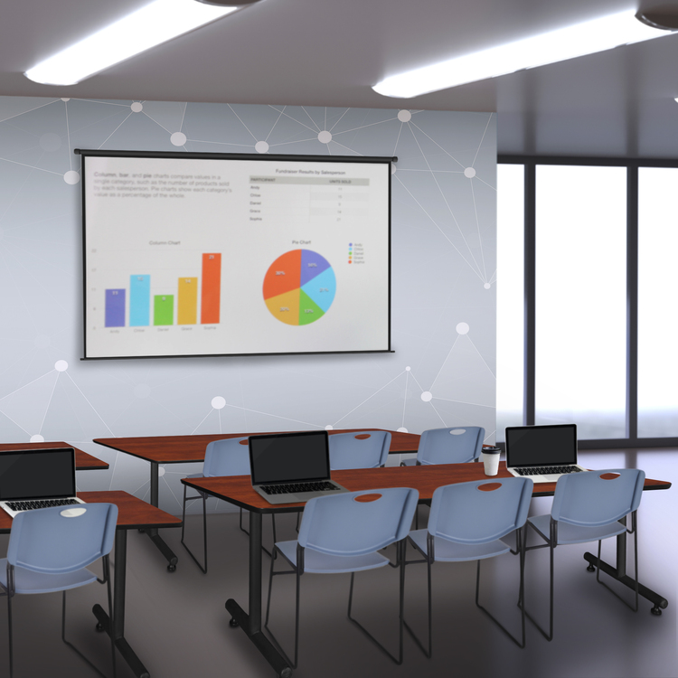 • Cherry Training Table & Blue Stack Chairs Set - 84 x 24 Desk & 3 Chair Combo - Regency Seating image - 1