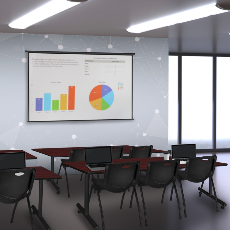 Mahogany Training Table 84 x 24 with Black Stack Chairs - Regency Seating