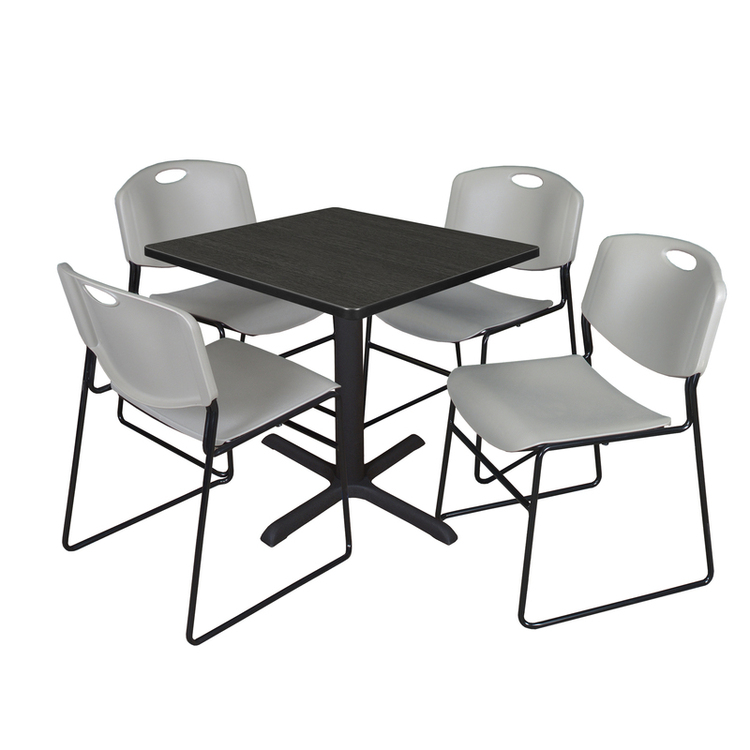 • Regency Cain 30 in. Square Breakroom Table- Ash Grey & 4 Zeng Stack Chairs- Grey image - 1
