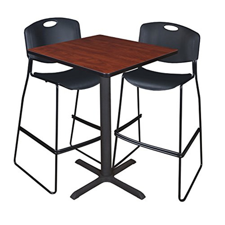 • Cain 30" Square Café Table- Cherry & 2 Zeng Stack Stools- Black image - 1