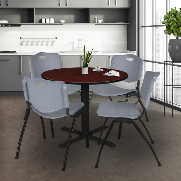 • 36 Round Mahogany Breakroom Table with Grey 'M' Stack Chairs - Regency Seating image - 1