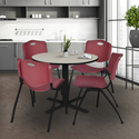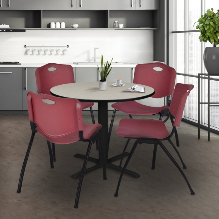 • 36 Round Breakroom Table Maple & 4 Burgundy Stack Chairs - Regency Seating image - 1