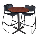 Cherry 36 Round Café Table Set w/ 2 Stack Stools Black - Regency Seating