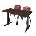 • Regency Cain 48 x 24 in. T-Base Training Seminar Table- Neo Walnut & 2 M Stack Chairs- Burgundy image - 1