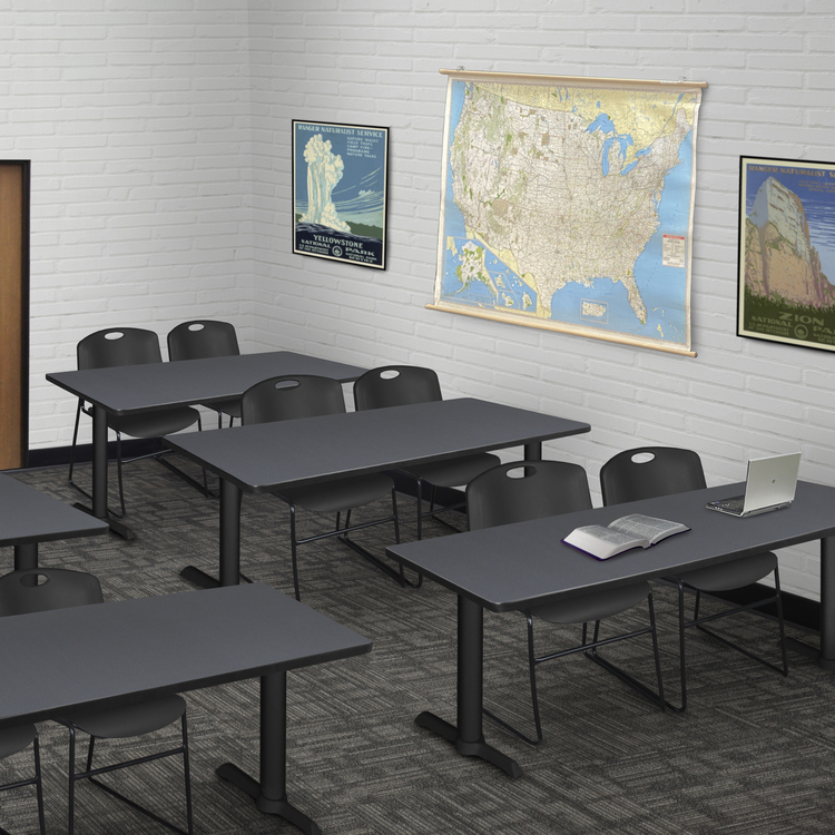 • Regency Cain 72" x 24" Training Table- Grey & 2 Zeng Stack Chairs- Black image - 1