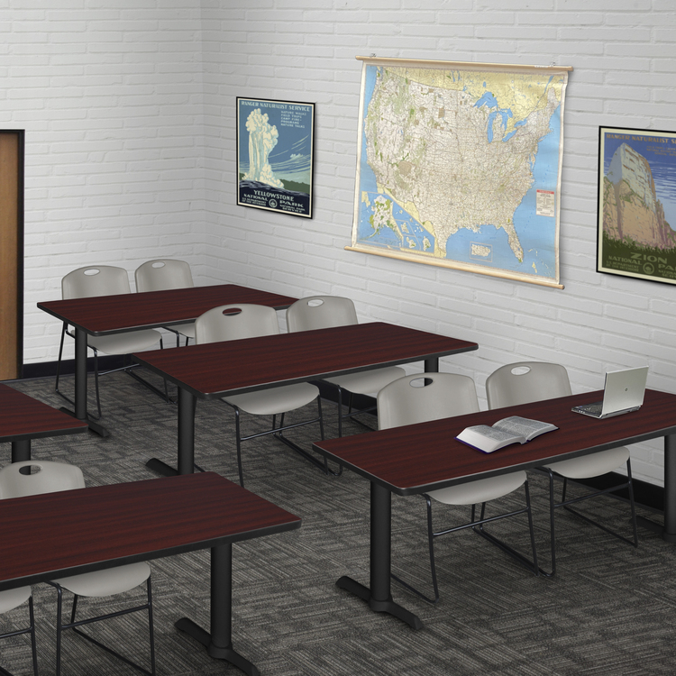 • Mahogany Training Table 72 x 24 with Grey Stack Chairs (2) - Regency Seating image - 1