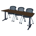 • Regency Cain 84 x 24 in. T-Base Training Seminar Table- Neo Walnut & 3 Cadence Nesting Chairs image - 1