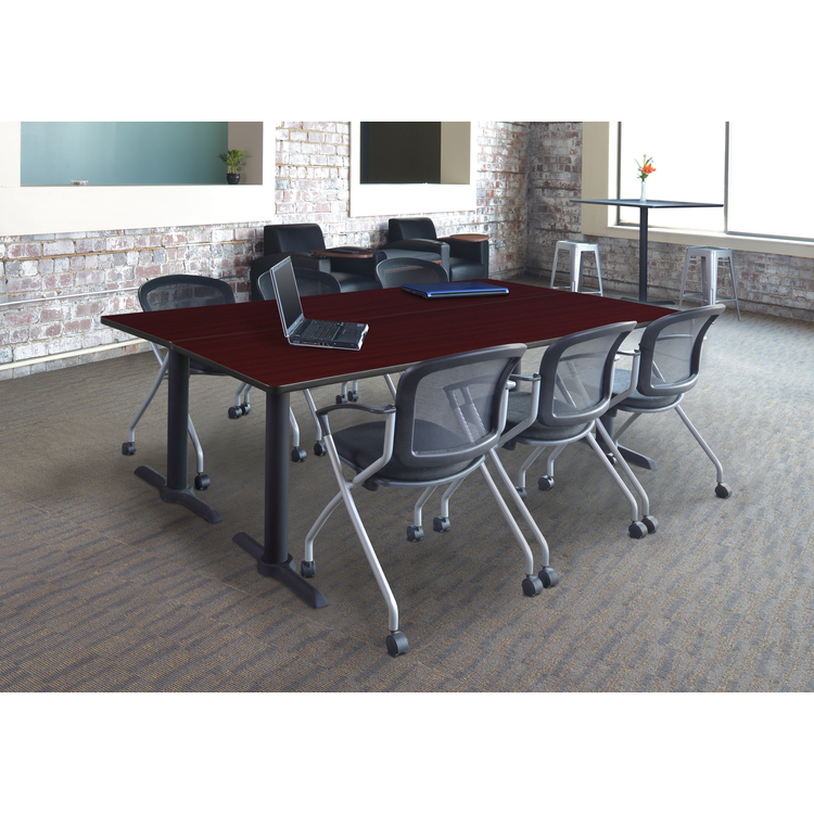 • Cain 84" x 24" Training Table- Mahogany & 3 Cadence Nesting Chairs- Black image - 1