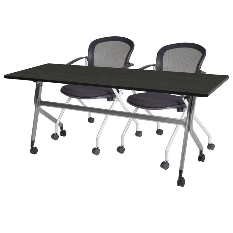 • Regency En Route Flip Top Mobile Training Table 66 in x 24 in.- Ash Grey top, Grey Base & 2 Cadence Nesting Chairs image - 1