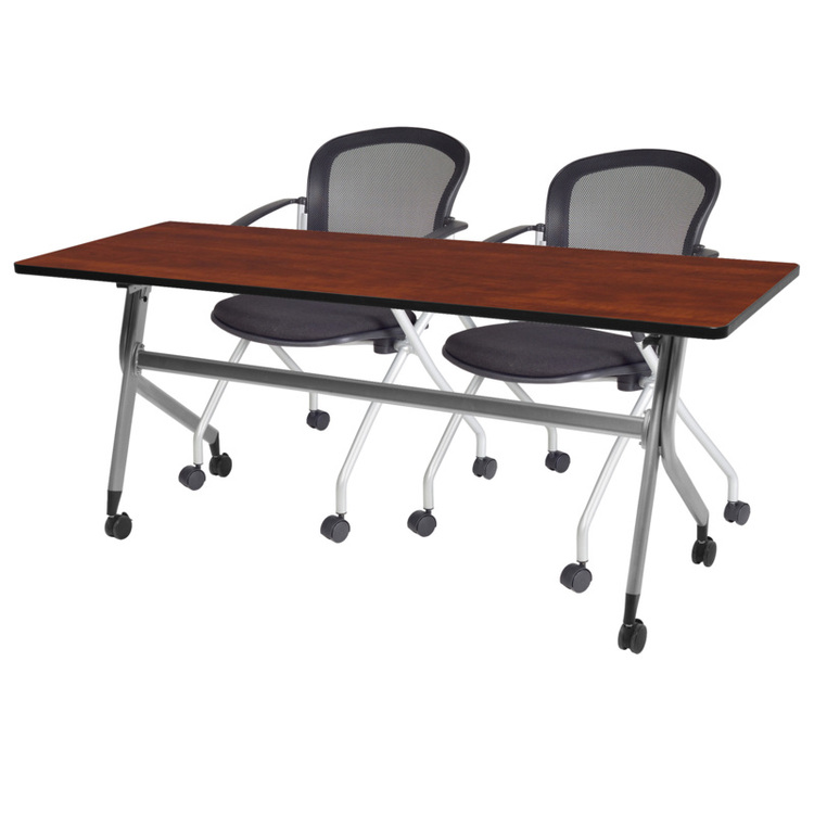 • Regency En Route Flip Top Mobile Training Table 66 in x 24 in.- Cherry top, Grey Base & 2 Cadence Nesting Chairs image - 1