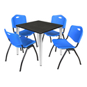 Regency Kahlo 30 in. Square Breakroom Table- Ash Grey Top, Chrome Base & 4 M Stack Chairs- Blue