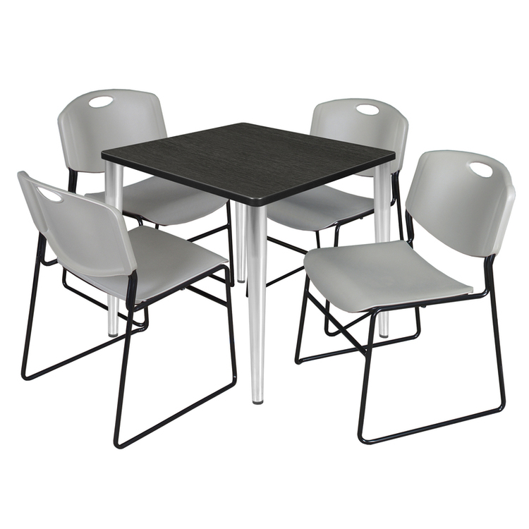 • Regency Kahlo 30 in. Square Breakroom Table- Ash Grey Top, Chrome Base & 4 Zeng Stack Chairs- Grey image - 1