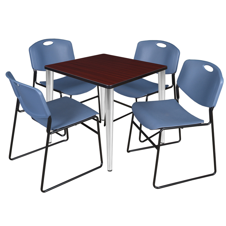 • Regency Kahlo 30 in. Square Breakroom Table- Mahogany Top, Chrome Base & 4 Zeng Stack Chairs- Blue image - 1