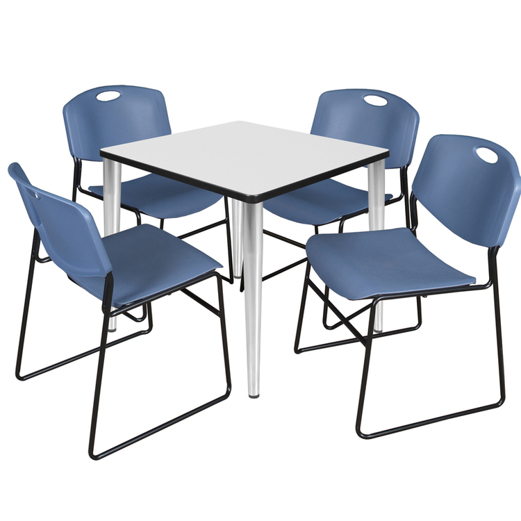 • Regency Kahlo 30 in. Square Breakroom Table- White Top, Chrome Base & 4 Zeng Stack Chairs- Blue image - 1