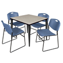 • Regency Kahlo 42 in. Square Breakroom Table- Maple Top, Black Base & 4 Zeng Stack Chairs- Blue image - 1
