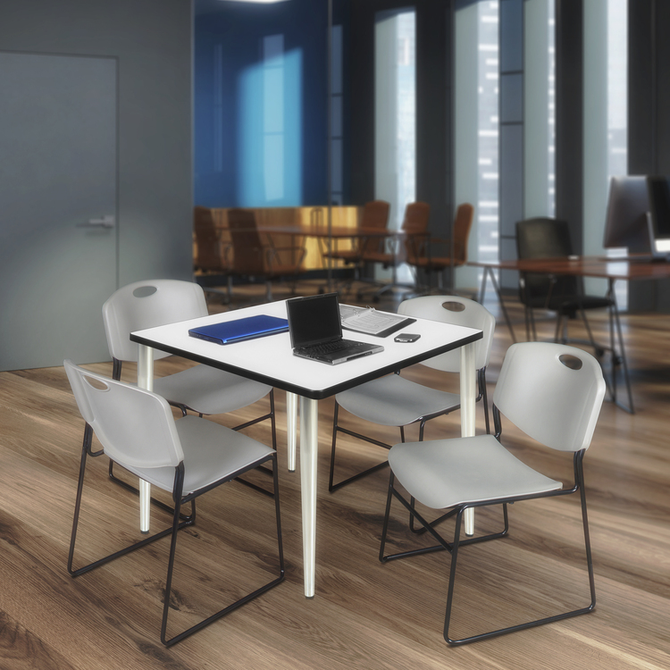 • Regency Kahlo 42 in. Square Breakroom Table- White Top, Chrome Base & 4 Zeng Stack Chairs- Grey image - 1