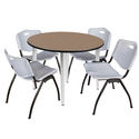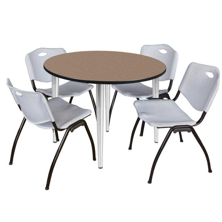 • Regency Kahlo 48 in. Round Breakroom Table- Noble Oak Top, Chrome Base & 4 M Stack Chairs- Grey image - 1