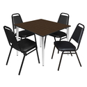 • Regency Kahlo 48 in. Square Breakroom Table- Neo Walnut Top, Chrome Base & 4 Restaurant Stack Chairs- Black image - 1