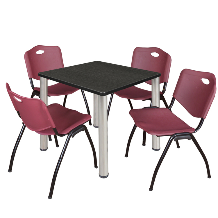 • Regency Kee 30" Square Breakroom Table- Ash Grey/ Chrome & 4 'M' Stack Chairs- Burgundy image - 1