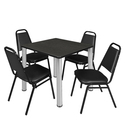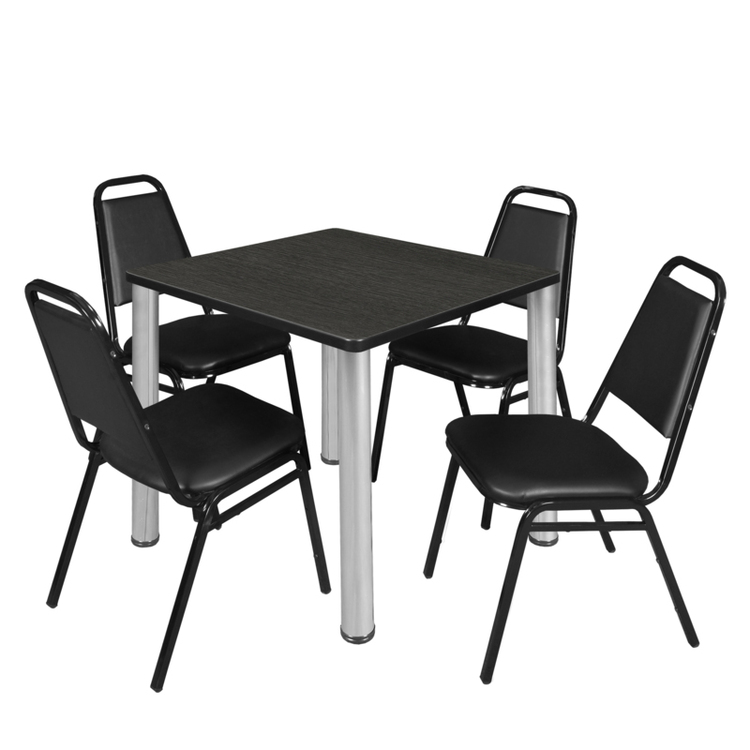 • Regency Kee 30" Square Breakroom Table- Ash Grey/ Chrome & 4 Restaurant Stack Chairs- Black image - 1