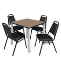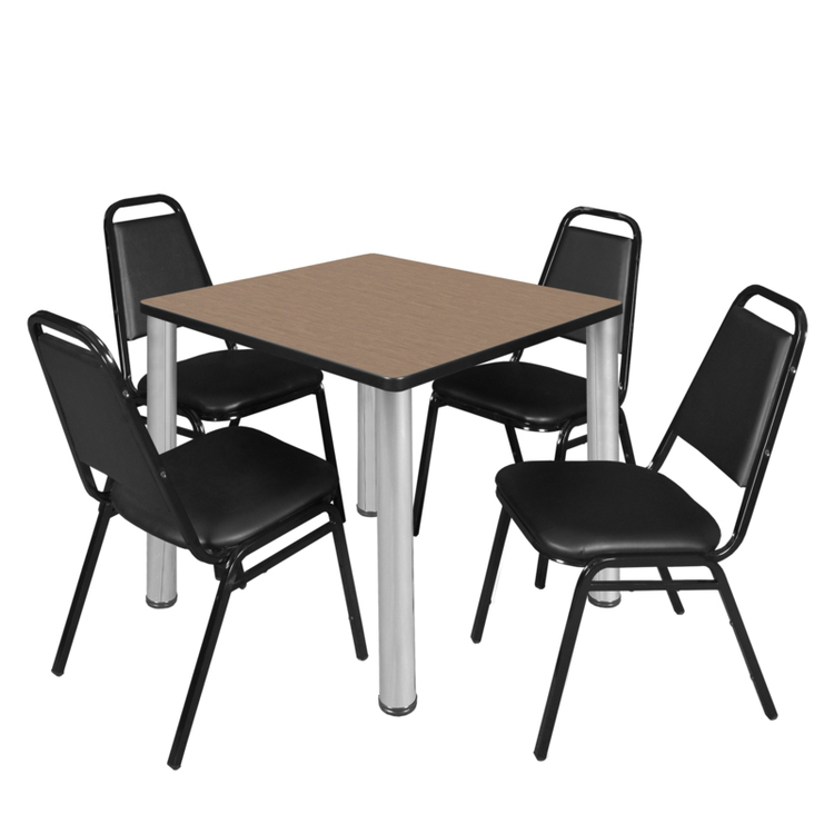 • Regency Kee 30" Square Breakroom Table- Noble Oak/ Chrome & 4 Restaurant Stack Chairs- Black image - 1