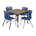 • Regency Kee 36 in. Square Adjustable Classroom Table- Noble Oak Top, Black Base & 4 Andy 18 in. Blue Stack Chairs image - 1