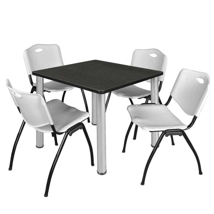 • Regency Kee 36" Square Breakroom Table- Ash Grey/ Chrome & 4 'M' Stack Chairs- Grey image - 1