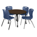 • Regency Kee 42 in. Round Mobile Adjustable Classroom Table- Neo Walnut Top, Black Base & 4 Andy 18 in. Blue Stack Chairs image - 1
