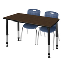 • Regency Kee 48 x 30 in. Adjustable Classroom Table- Neo Walnut Top, Black Base & 2 Andy 18 in. Blue Stack Chairs image - 1
