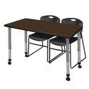 • Regency Kee 48 x 30 in. Mobile Adjustable Classroom Table- Neo Walnut Top, Grey Base & 2 Black Zeng Stack Chairs image - 1