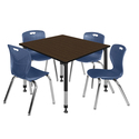 • Regency Kee 48 in. Square Adjustable Classroom Table- Neo Walnut Top, Black Base & 4 Andy 18 in. Blue Stack Chairs image - 1