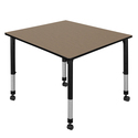 • Regency Kee 48 in. Square Height Adjustable Mobile Classroom Activity Table- Noble Oak Top & Black Base image - 1