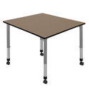 • Regency Kee 48 in. Square Height Adjustable Mobile Classroom Activity Table- Noble Oak Top & Grey Base image - 1