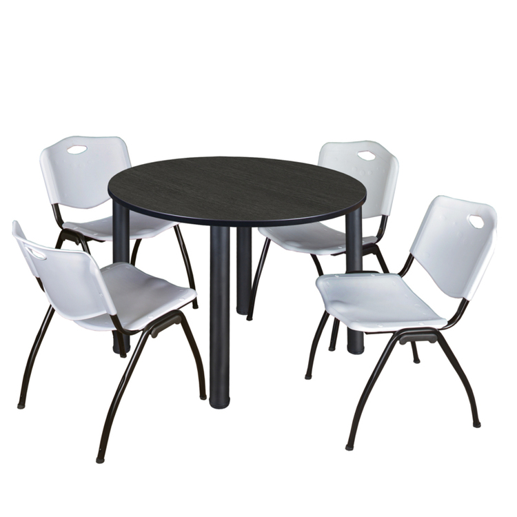 • Regency Kee 48" Round Breakroom Table- Ash Grey/ Black & 4 'M' Stack Chairs- Grey image - 1
