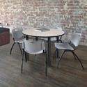 • 48'' Round Meeting Table & Grey Stack Chairs Set - Maple - Regency Seating image - 1