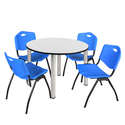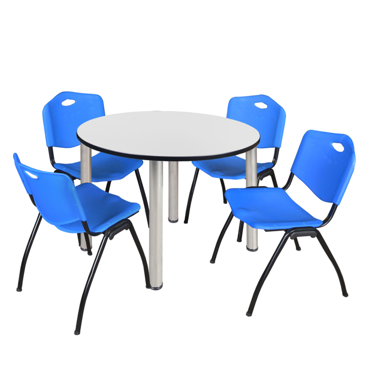 • Regency Kee 48" Round Breakroom Table- White/ Chrome & 4 'M' Stack Chairs- Blue image - 1