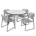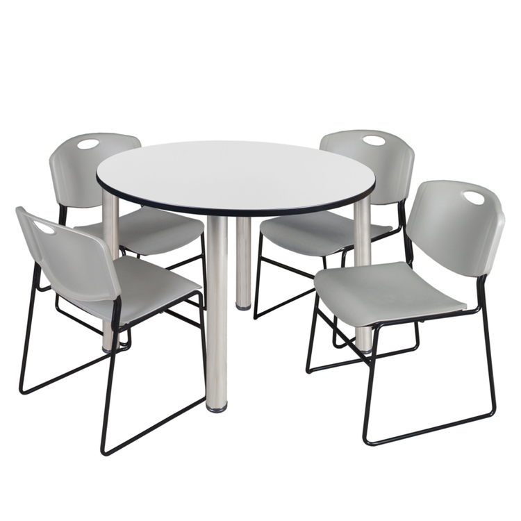 • Regency Kee 48" Round Breakroom Table- White/ Chrome & 4 Zeng Stack Chairs- Grey image - 1